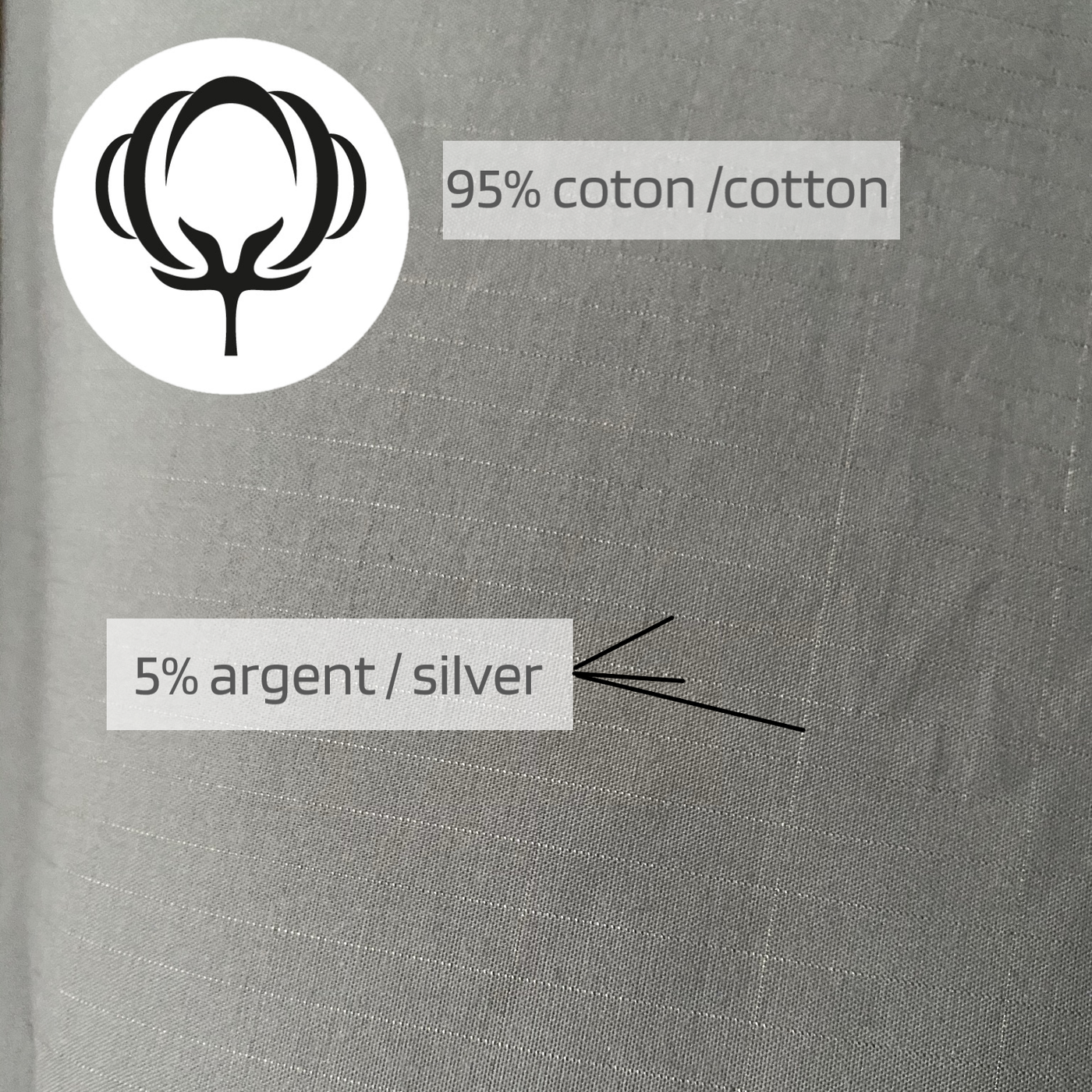 • Touché et texture comparable à un drap traditionnel. Confortable, il est doux au touché grâce à sa composition 95% coton et 5% de fibre d'argent.