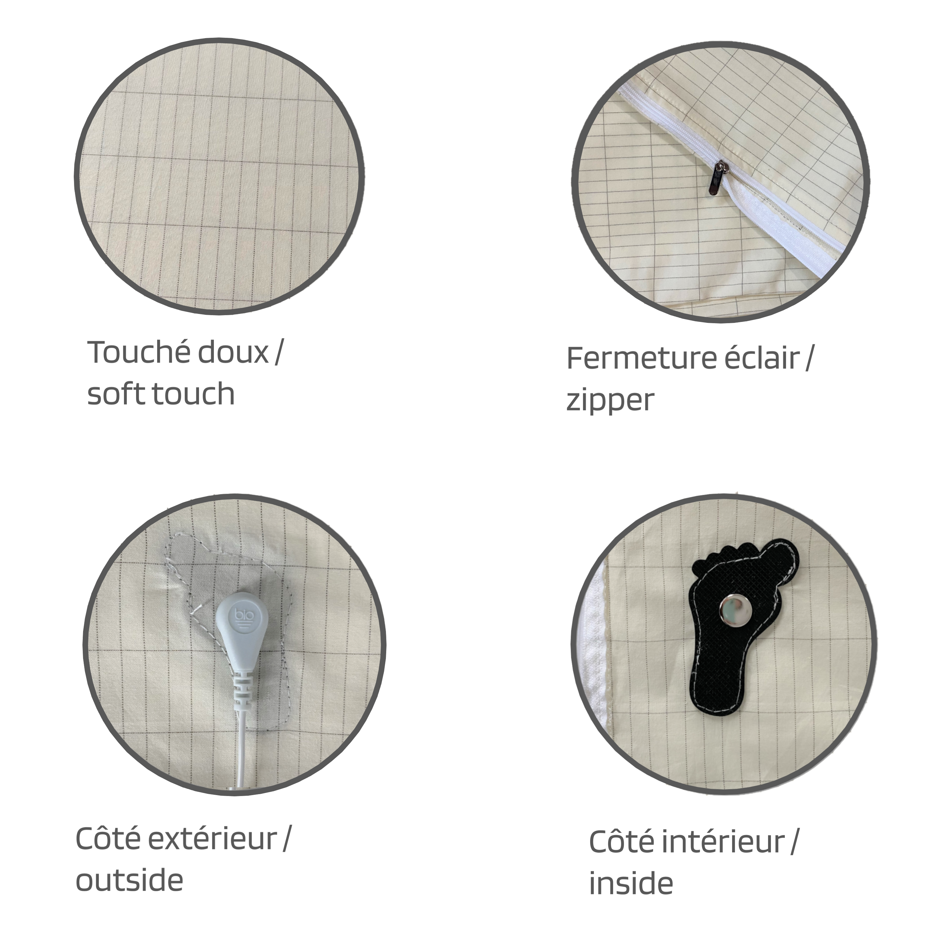 - Tissu beige : 95% coton, 5% argent